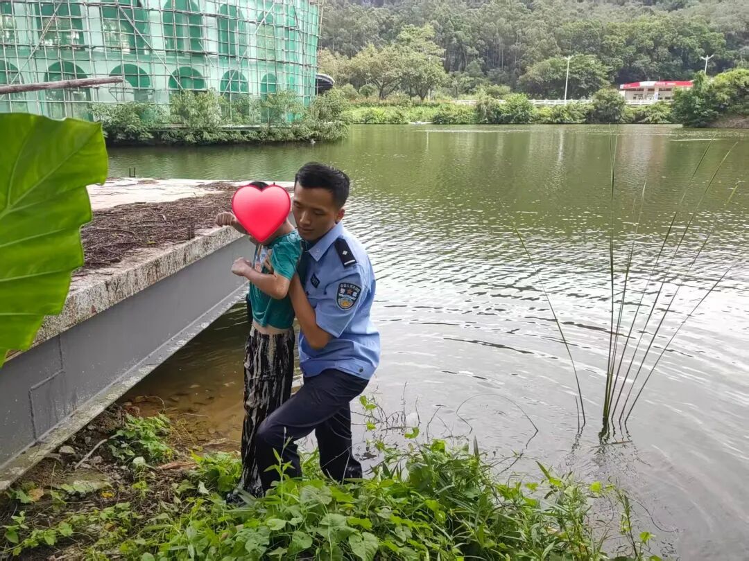 经过紧张的搜寻,民警辅警在儿童公园附近的湖泊发现走失的男童。此时孩子正身处湖中,情况十分危急,民警辅警立即纵身下水,将男童从湖中安全救出。
