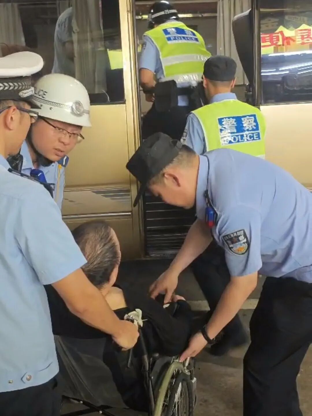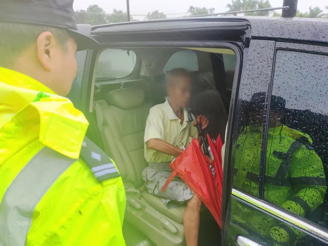 24日11时许,新会特警队员路面巡逻至新会女人街路口时,接到群众的紧急求助。群众称车上载着突发心肌梗塞的老人,急需送院就医,但因台风天气影响和道路交通管制受限,请求民警提供帮助。
